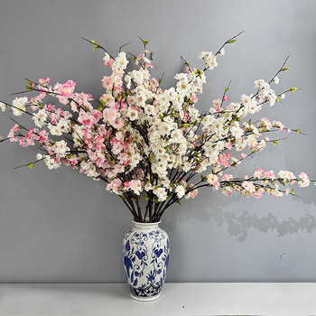 Flores artificiales de tela de seda de tallo largo, ramas de flor de melocotón blanco para decoración de centro de mesa de fiesta en casa para el Día de San Valentín